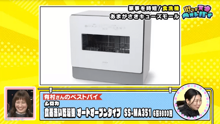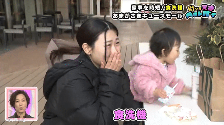 かわいい娘と散歩中の女性は、シロカの食器洗い乾燥機オートオープンタイプがベストバイ。狭いキッチンでも置くことができ、洗浄力も抜群で、スピーディーモードだと「速かったら1時間弱で(洗えます)!」「すごく楽です!」とのこと。食器はもちろん、子どものおもちゃまで幅広く洗うことができ、時短になったぶん、女性は娘と一緒に過ごせて幸せそうです!