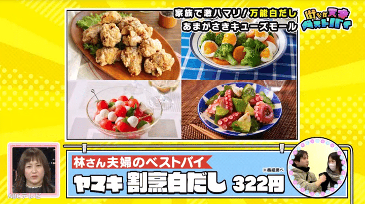 中学生の子どもがいる夫婦は、ヤマキの割烹白だしがベストバイ。冷凍うどんの試食販売で飲んでみたところ、自分たちはもちろん、「子どもも『おいしい!』ってハマって。すごく衝撃的で。普通のうどんつゆと違うんや~ってなった」のだとか。家族全員が割烹白だしにハマったため、「なんでも料理に白だしを足している」「豚汁とか、生姜焼きとかにもちょっと入れたりとかして」おり、常に切らさないようにしているそうです!