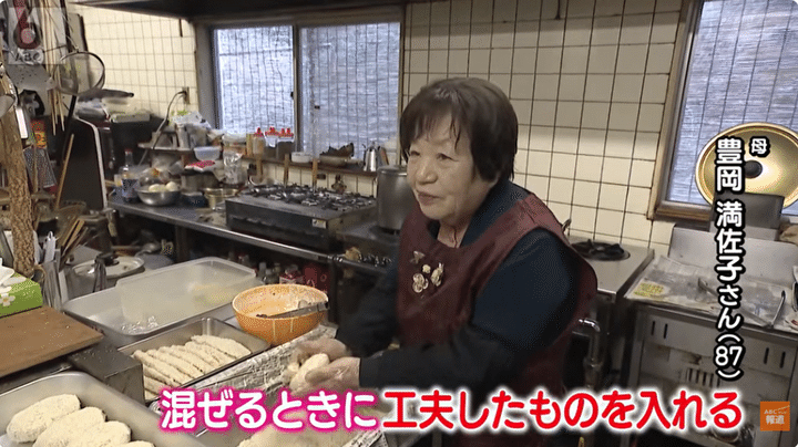 お店を切り盛りするのは、接客担当の娘・豊岡正美さん(60)と、厨房担当の母・満佐子さん(87)の親子。朝7時半、正美さんは自宅の脇の畑へと向かいます。収穫するのは、コロッケやトンカツの横に添えるというワサビ菜。店で出す野菜のほとんどは、この自家菜園で正美さんが作っています。