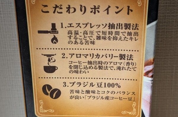 苦味と酸味とコクのバランスがよい「ブラジル産コーヒー豆」100%使用。高温高圧・短時間で抽出することで、雑味を抑えたキレのある苦味を引き出す「エスプレッソ抽出製法」と抽出時のアロマ(香り成分)を閉じ込める「アロマリカバリー製法」のダブル抽出製法が特徴のこだわりアイスコーヒーです。これからの季節に最適です。今なら99円とお買い得です!