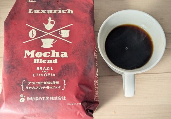 エチオピアとブラジルのアラビカ豆100%使用。エチオピア産コーヒー豆が持つ柑橘系の爽やかな酸味、パッションフルーツのような甘味とコクで、紅茶を彷彿させる風味のモカフレーバーに加え、ブラジル産コーヒー豆のキレの良い苦味をブレンドとのこと。ハイローストと記載されていますが、実際にはシティローストともいえるような、なめらかな質感とボディ感のあるブレンドコーヒーを楽しめます。