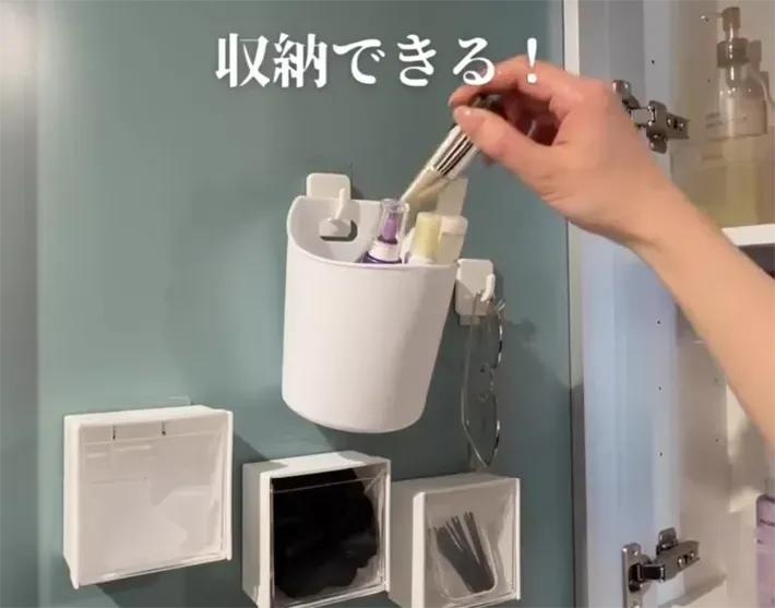 意外と幅を取りがちなアイテムなので、1か所にまとめて入れておけると、洗面台の見た目もスッキリします。