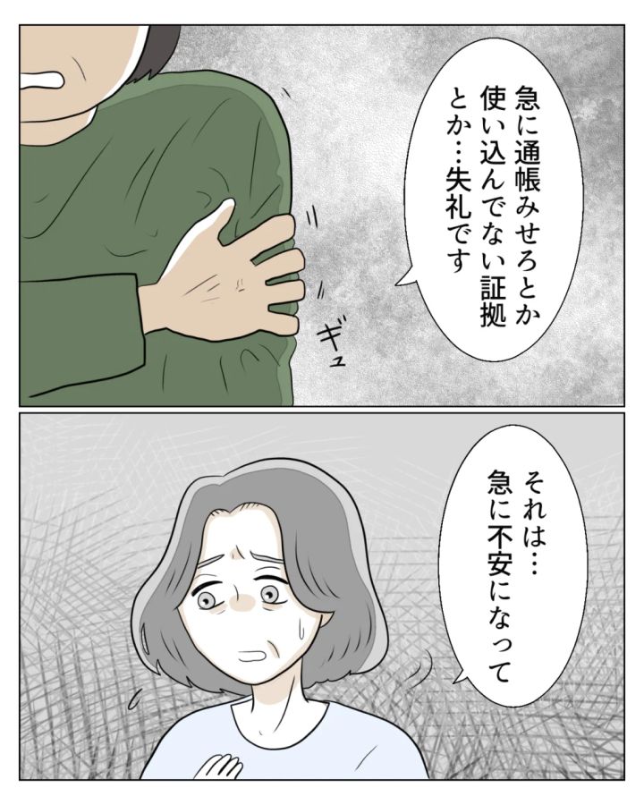 義母から毎月もらっている3万円のうち1万円は、言われた通りきちんと貯金しています。それなのに「通帳を見せろ」とか「使い込んでいない証拠を見せろ」なんて、あまりにも失礼です。私がそう指摘すると、義母はオロオロしながら「それは、急に不安になって・・・」と答えました。