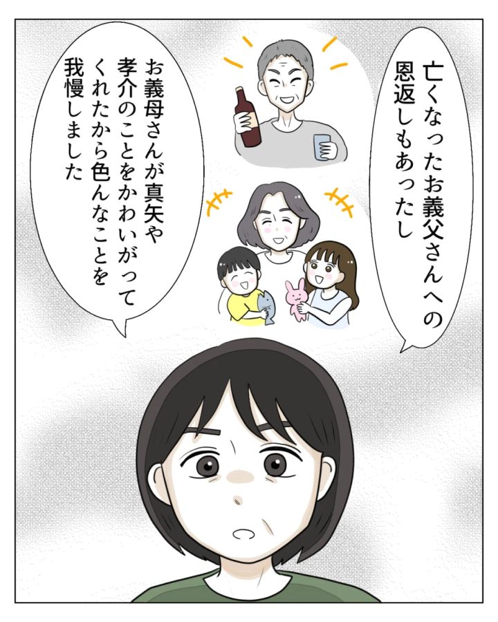 これまで義母からどれほど理不尽な扱いを受けても、生前良くしてくれた義父への恩返しや、真矢や孝介を可愛がってくれたことを思い、ずっと耐えてきました。でも、もう我慢の限界です。