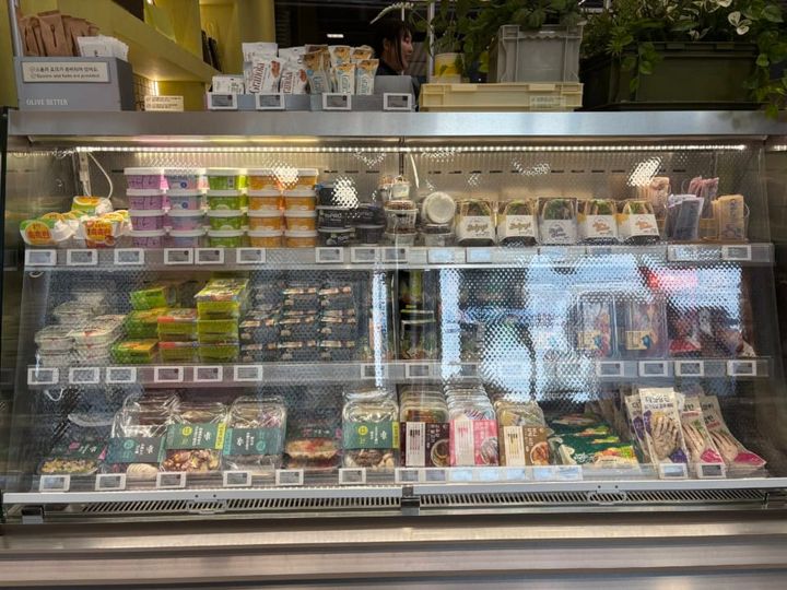 また、ウェルネスをテーマにした食品類もあり、韓国で人気のGREEKDAYのグリークヨーグルトなども種類が揃っていて、朝ごはんや軽く食べたいランチにもよさそうです。