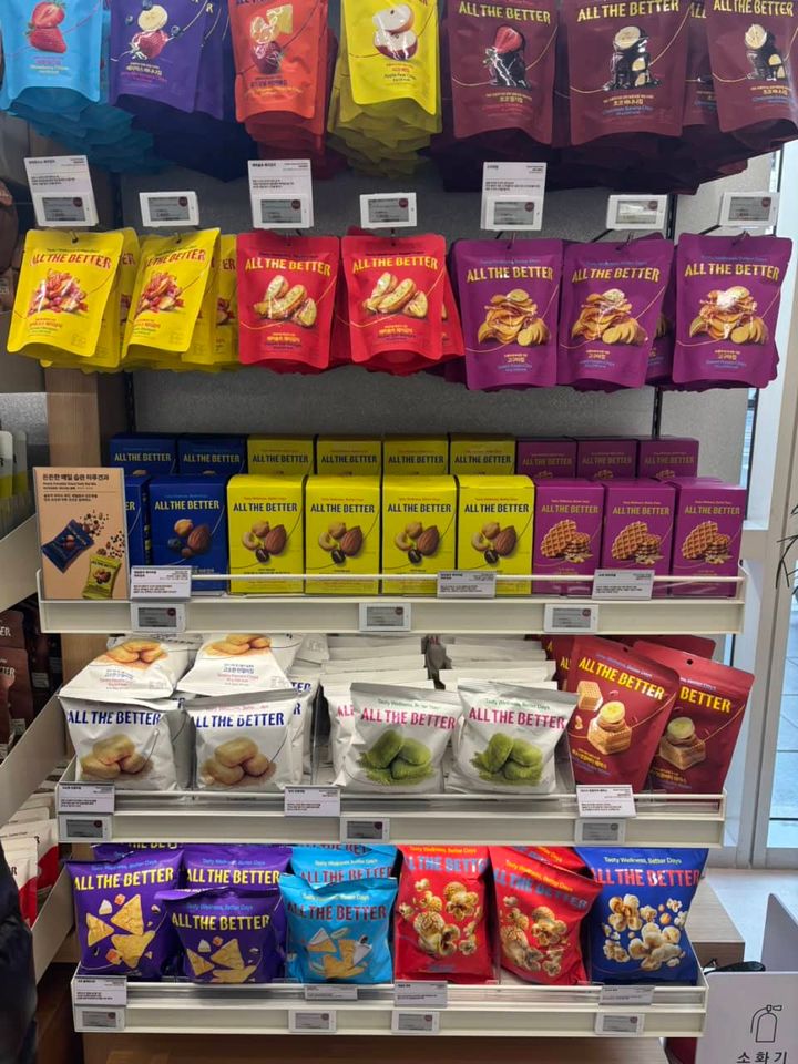 入口に入ってすぐに目についたのがALL THE BETTERのお菓子たち。パッケージも可愛いし、価格もお手ごろ。それでいてウェルネスを考えられたお菓子とあってお土産によさそうですよね。私は、ウェッジポテト(ベーコン・₩2,500)とさつまいもチップ(₩2,500)を購入し、子どもと一緒に美味しくいただきました。