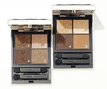 〈左から〉クチュール ミニ クラッチ 100、300 各10,890円/イヴ・サンローラン・ボーテ 登場するやいなや話題となり、瞬く間に欠品。左の100は少しグレイッシュ系のヌードトーン、右の300はキャメル系カラー。