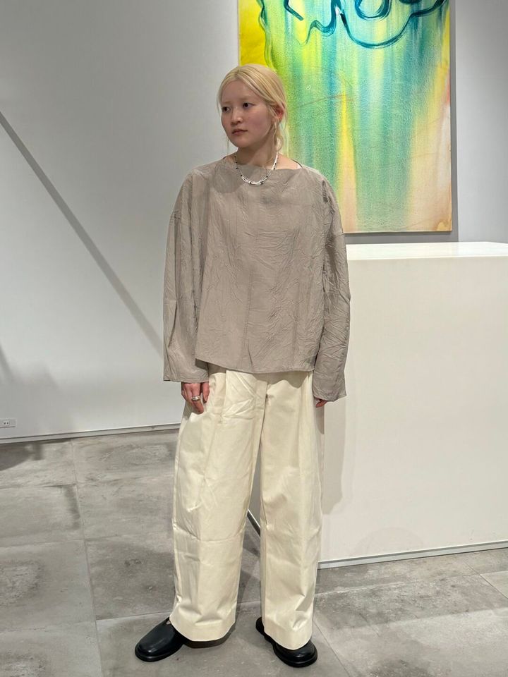 日本の文化や、英国の衣服、建築からインスピレーションを得て、ハンサムかつミニマルな印象のSTUDIO NICHOLSON。デザイナーがテキスタイル出身だからこそ、生地の特性を最大限にいかした「生地を優先」のモノづくりが魅力的です。白を基調とし、クリーンな印象できていただくと素敵です。
