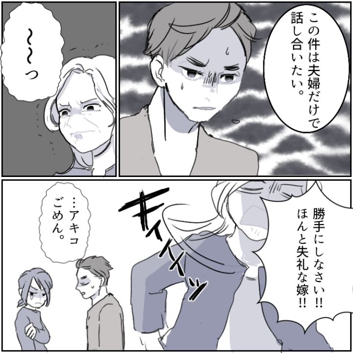 いつもやって来ては、嫌味を言ってくる義母。しかし、夫は義母の相手をしようとはせず、アキコに押し付けるばかりだった。