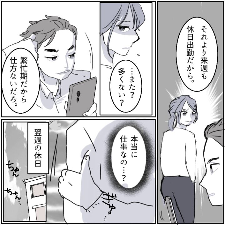 夫と結婚してから2年が経過したアキコ。しかし最近は夫の休日出勤や残業がやけに増えたため、彼の不倫を疑っていた。さらには、頻繁に義母がいきなり家にやってくるため、ストレスが溜まっていく日々だった。