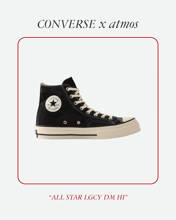 「1970年代に展開されていた“オールスター レガシー”のディテールを踏襲し、2025年に新モデルとして登場した“オールスター レガシー HI”。当時のデザインである“一ツ星”ヒールラベルや、肉厚なシューレースを採用したこだわりのモデルに『アトモス』別注モデルが登場。品のあるデニム素材で男女問わずスタイリングしやすいのがポイントです」(「atmos」PR池澤さん)