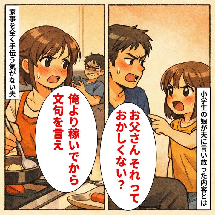 「俺より稼いでから文句を言え」と家事を一切しない夫。だが、娘の正論をうけると黙り込んだ【短編小説】