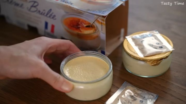 付属のキャラメルシュガーをかけてオーブントースターで加熱し、冷蔵庫で冷まします。キャラメリゼされた香ばしく濃厚なシュガーの下には、やさしい味わいのとろりと柔らかいクリームが。クラッカーやパンなどに塗ってもおいしくいただけそうです。