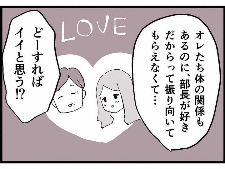 自称「男好き」の同僚反田。飲み会の翌日「部長としてしまい、本気で好きになった」と幸木に報告してきて…。妻子持ちの部長との不倫をやめるよう説得しても、聞く気はないのでした。