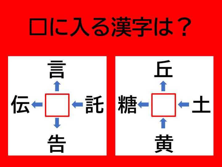 【漢字パズル】脳トレに挑戦! □言、□伝、□告、託□、に入る漢字は何?