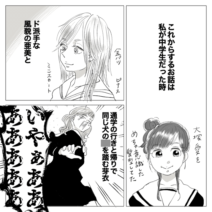 作者が中学生の頃、2人の親友と過ごした日々を描いた物語。文武両道で奔放な亜美、亜美とともに悪戯ばかりしてきた芸子、そしてそんな2人と不思議と気が合う天然な芽衣。仲良し3人組は同じ中学に進学する。