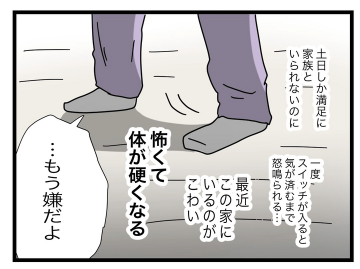家族といられるせっかくの土日くらい笑顔で過ごしたいのに、妻の気分次第で状況がガラリと変わってしまう日々に、夫は精神的に追い詰められていたのでした。