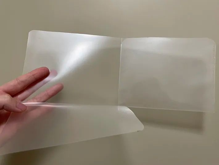 クリアファイルがカットできたら、半分に折り畳み、しっかりと折り目をつけましょう。
