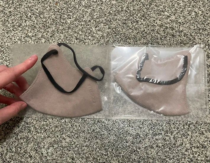 実際にマスクを入れてみます。片方に予備のマスクを入れて、もう片方に使用中のマスクを挟みました。