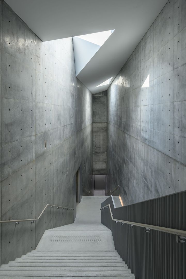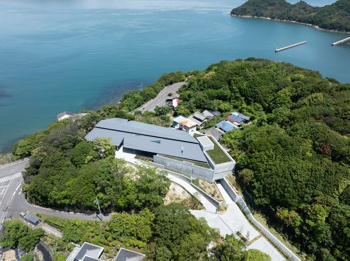 数ある直島の美術館の中で、初めて館名に「直島」を冠した直島新美術館は2025年、ベネッセアートサイト直島内における安藤忠雄設計による10番目のアート施設として開館した。丘の稜線をゆるやかにつなぐような大きな屋根が特徴的だ。地下2階、地上1階建て。トップライトから自然光が入る階段室は、地上から地下まで直線状に続いており、階段の両側に4つのギャラリーが配置されている。