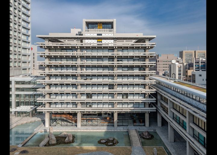 丹下健三の代表作の1つとして知られる香川県庁舎東館。竣工は1958年。木造建築を思わせる柱と梁の組み合わせや、通りからスムーズにアクセスできるピロティ、さらに、そこからつながる南庭など県民に開かれた空間を積極的に取り入れた構成が高く評価されている。