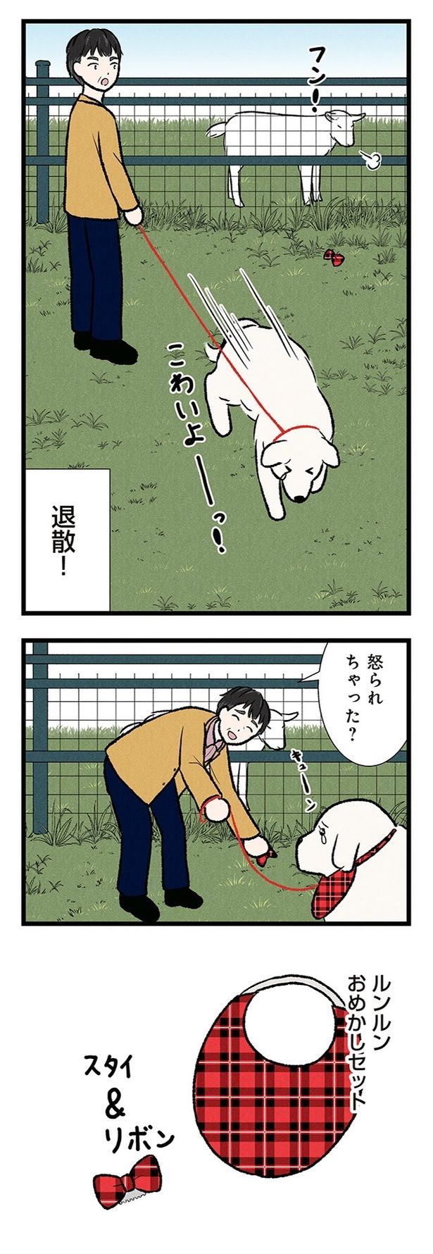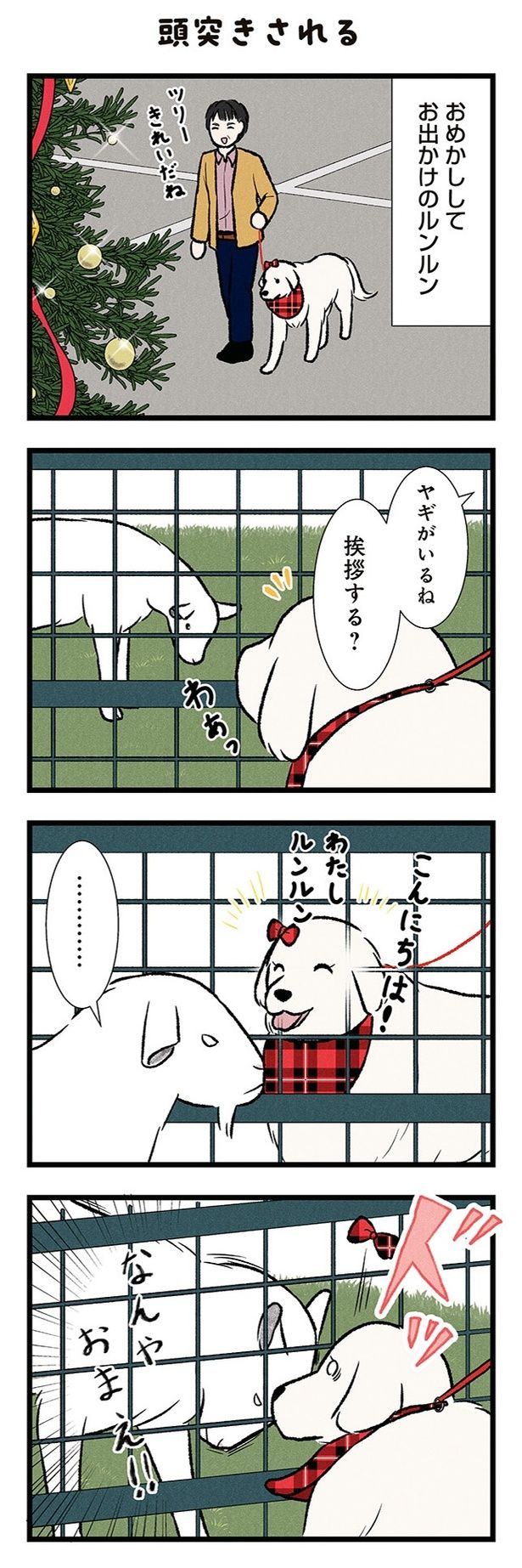 おめかししてお出かけしたグレートピレニーズ。ヤギを見かけて、ニコニコ挨拶すると…?/今日のルンルン