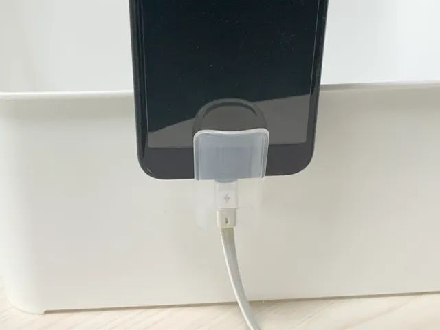スマホを縦に置けば、充電しながら置くこともできますよ!