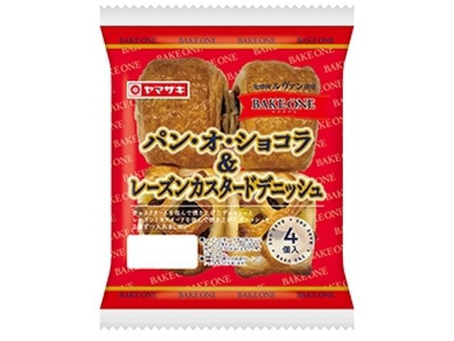 ヤマザキ BAKE ONE パン・オ・ショコラ&レーズンカスタードデニッシュ 袋4個