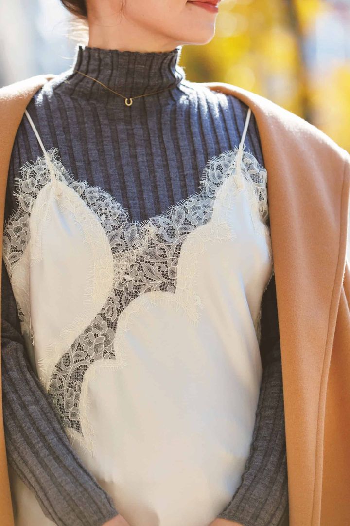デニム×ニットは“レース挟み”で更新