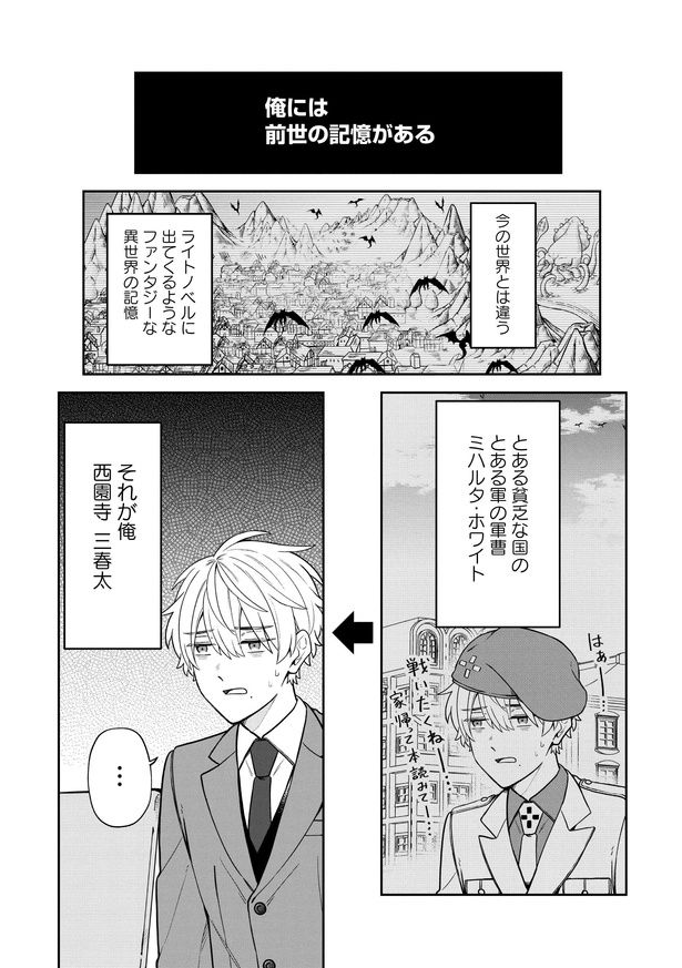 憧れの小説家はまさかの因縁の相手——!? 人気絶頂の小説家・東雲 陣(しののめ じん)の担当になった新人編集者・西園寺 三春太(さいおんじ みはるた)。大ファンだった先生の担当となり、西園寺は大喜びで初打ち合わせに臨む。ところが、謎に包まれた小説家の正体は、前世で西園寺が殺した敵国の軍曹だった! しかも彼にはしっかり前世の記憶があって…。前世の恨みを忘れていないと西園寺は焦るが——!? この再会は運命?それとも宿命? pixivコミックランキング2021で BL部門3位にランクインした話題作『前世で殺した相手の担当編集になりました』をお楽しみください!