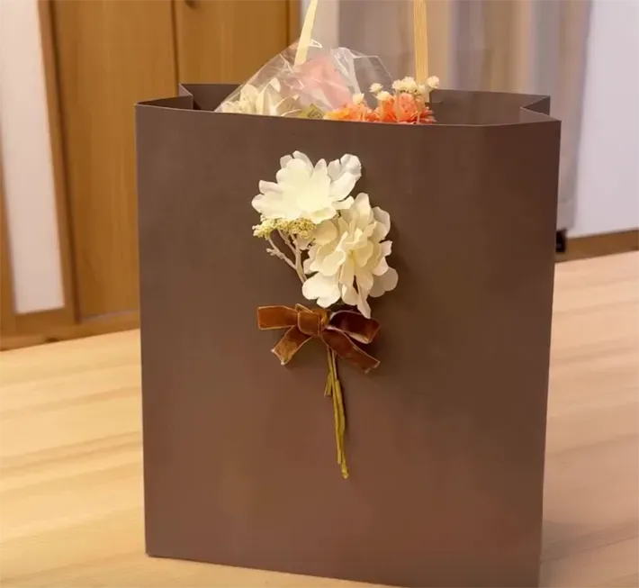 ブーケだけではなく、ブーケを入れる紙袋も作っていますよ。