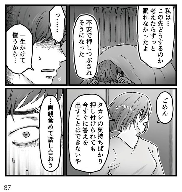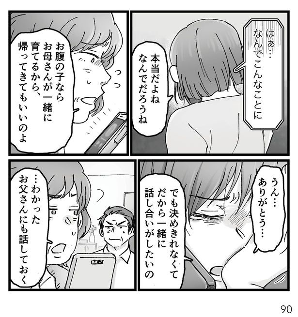 不倫夫と離婚すべき? 妊娠中の妻は両家の両親を呼んで話し合いをすることに/結婚は地獄の始まり1⑬