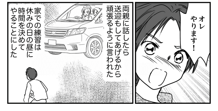 帰って両親に話したら、送迎もしてあげるから頑張るように言われた。家のバスケのゴールは、休みの日のお昼に時間を決めて使うことにした。