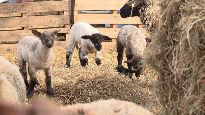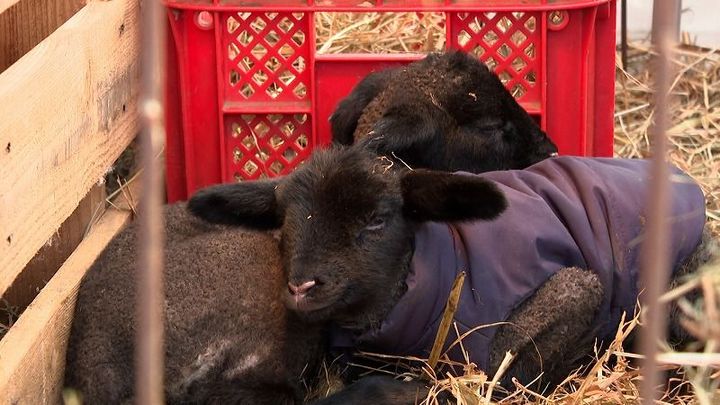 赤ちゃんヒツジたちはぴったりとくっついて暖をとったり、地元産のコーンが入ったエサをもりもり食べたり、愛らしい姿を見せています。