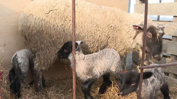 お母さんにくっついて甘える子ヒツジたちは、2年ぶりという三つ子ちゃん! 2月中旬に生まれたばかりです。