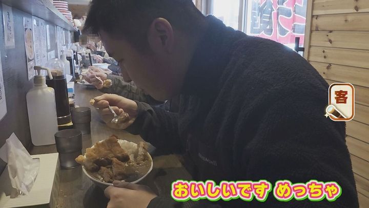 番組スタッフ:「カツカレーのお味は?」常連客:「いつもどおりおいしいです。ずっと変わっていないんじゃないかな?」