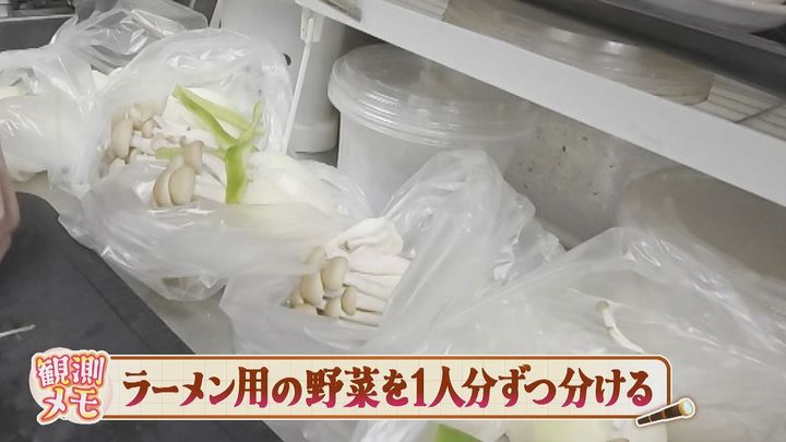 ラーメン用の野菜は1人分づつ小分けに準備しておきます。