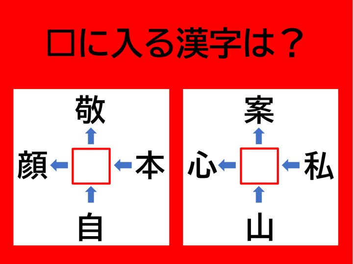 【漢字パズル】脳トレに挑戦!□敬、□顔、自□、本□、に入る漢字は何?