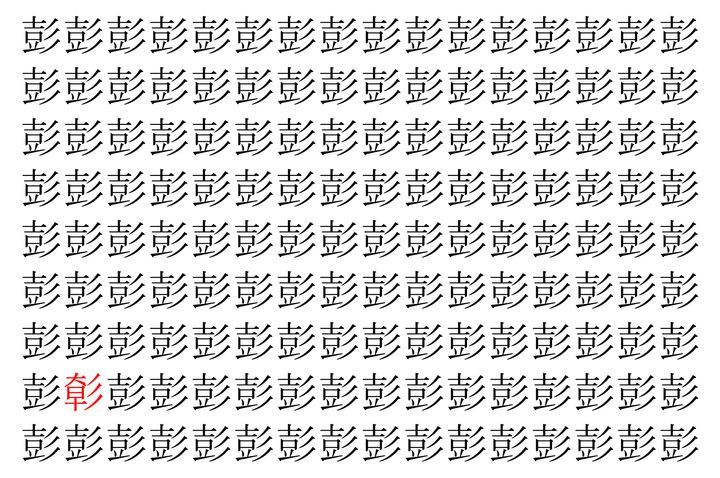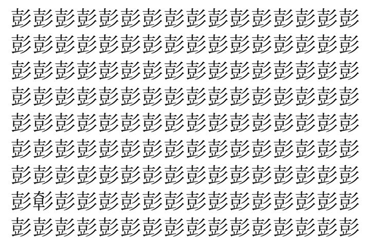 【脳トレ】「彭」の中に紛れて1つ違う文字がある!?あなたは何秒で探し出せるかな??【違う文字を探せ!】