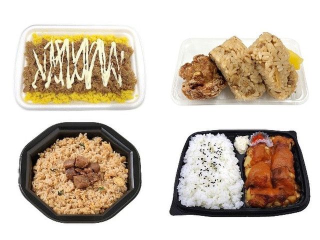 昆布と醤油ごはんの味飯おむすびと、人気のおかずのセットです。おかずは、から揚げ・ハンバーグ・たまご焼き・焼きそばを組み合わせました。 ※静岡県(西部)では取り扱いがございません。 東北・関東で販売