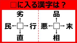 【漢字パズル】□劣、□行、□直、□民 □に入る漢字は何…!?
