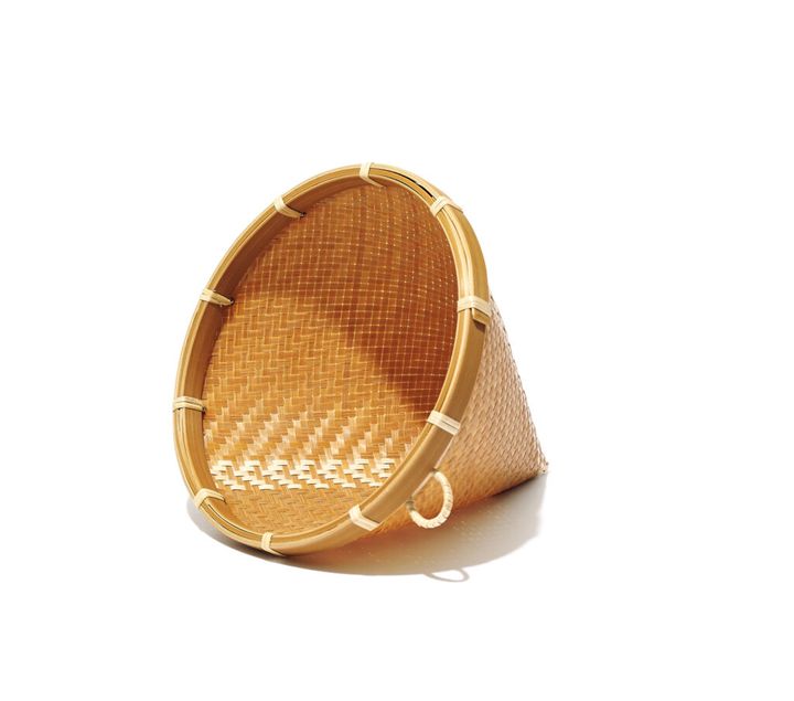 高温と圧力で竹を蒸し焼き状にする炭化竹を使ったコーヒーフィルターは、防虫・防カビ効果があり、塗料などを使用していないので口にしたときも安心。ペーパーなどは使わず直接、粉を入れてドリップ。まろやかな味わいが楽しめる。コーヒー約4杯分の粉が入る。竹ドリッパー¥19,800(吉田竹物/くるみの木 カージュ 0742−20−1480)
