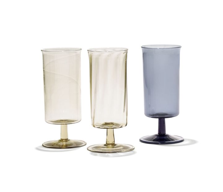 長野・松本に吹きガラス工房を構える〈リトグラス〉の永木卓は、自身の器を“もの静かに佇み受け入れ、寡黙であり、空っぽである”という。マウスブローによる脚付きグラスは、氷を入れたときのカラカラという静かな音も含めて、おいしさを際立たせてくれる。右/¥7,920、中・左/各¥7,700(以上RITOGLASS/プール)