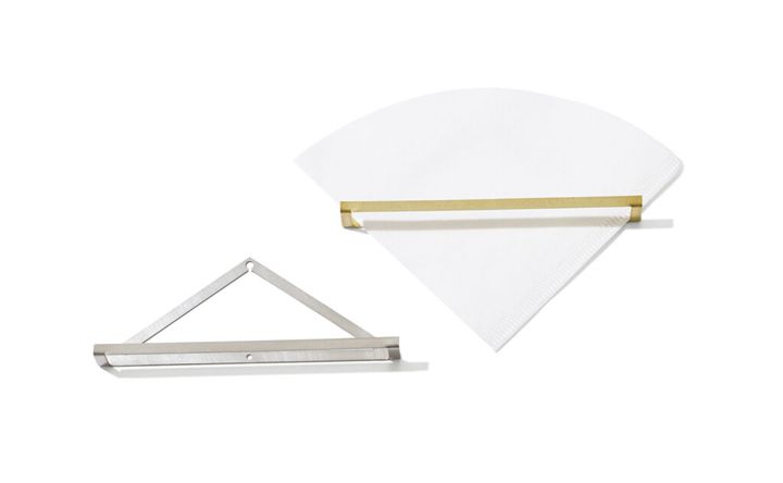 石川・金沢を拠点に、カトラリーをはじめとした生活道具を制作する金工作家によるもの。構造はシンプルだが、収納に困りがちなペーパーフィルターを取り出しやすくホールドしてくれる、スマートな道具だ。ネジで壁に固定できるので、オブジェ感覚で取り付けたい。真鍮とステンレスの2種類。各¥3,080(アウトバウンド)
