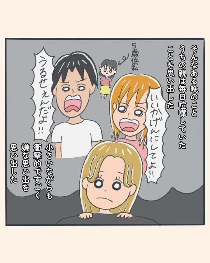 夫と距離をおこうとすればするほど、イライラが募ってしまった えみさん。さらに、自分が子どもだったころを思い出し、夫婦喧嘩は子どもにも悪影響を及ぼすことを思い起こします。