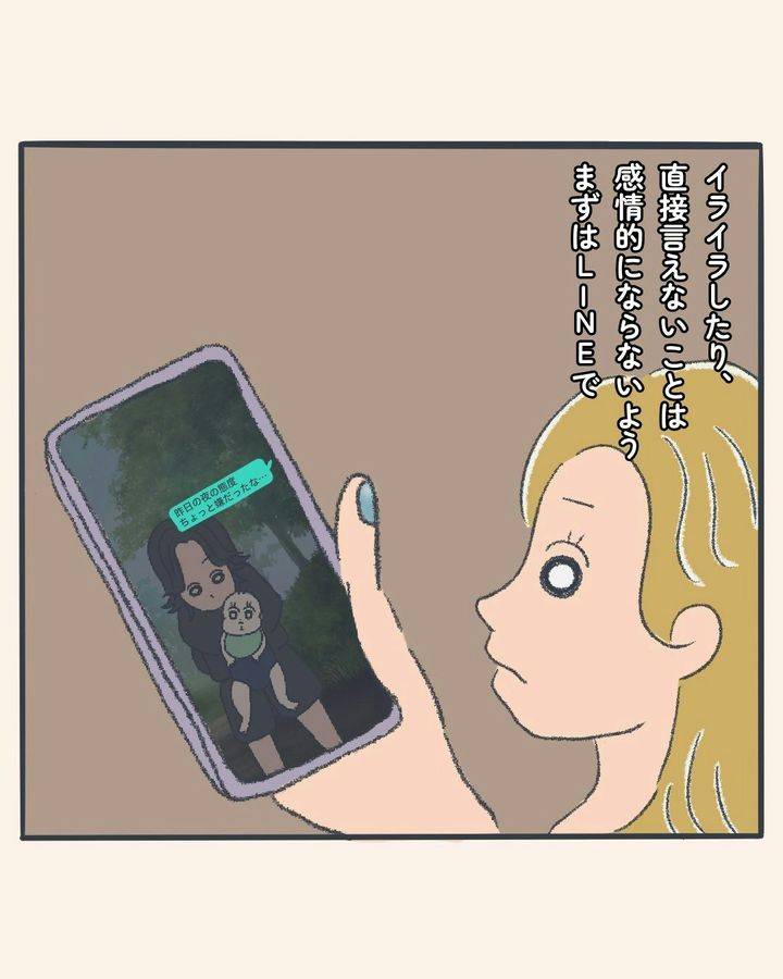 えみさんは、まずは生活リズムを見直しました。すれ違いの生活で、会話がないと、どうしても殺伐とした雰囲気になってしまうもの。そして、もう1つ変えたことが「伝え方」。感情まかせに言ってしまうと、どうしてもキツくなるものです。メッセージだと、冷静に伝えることができますね。