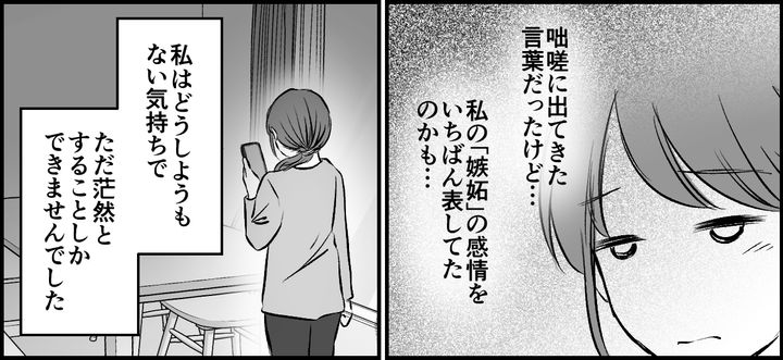 怒りの勢いで言ってしまいましたが、自分の心の奥にあった嫉妬の感情の正体に気づき、私は茫然としました。