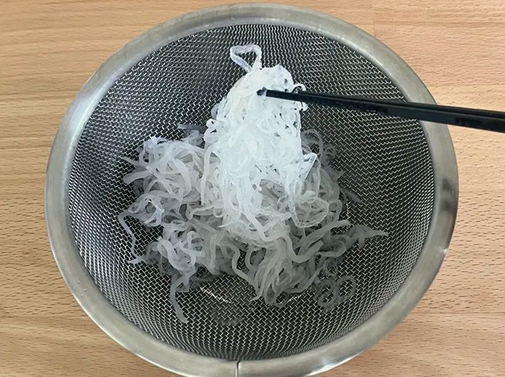 解凍したしらたきは、少し細くなり、やや乾いたような見た目になっていました。