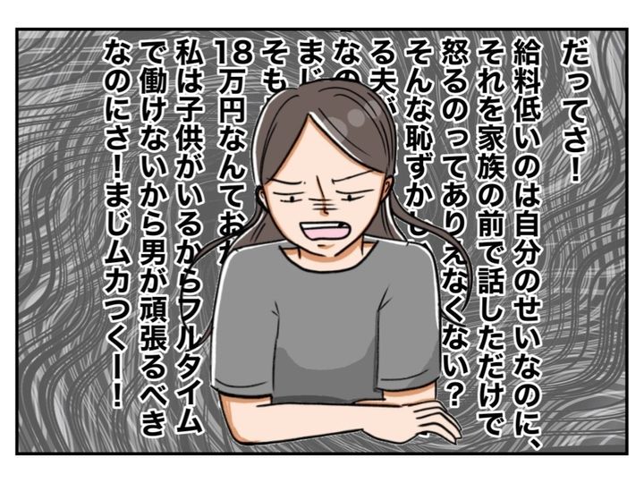 本作では、夫の収入に不満を抱える妻の姿が描かれています。子どももいるため、たしかにお金は必要です。ですがメイカは夫を責めるばかりで、今まで感謝や労いの言葉を伝えてきませんでした。