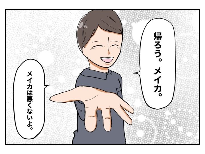 途方に暮れていると、夫があらわれます。どうやら、昨夜の離婚騒動のことが気になり、会社の昼休みにメイカを探しに来てくれたのです。
